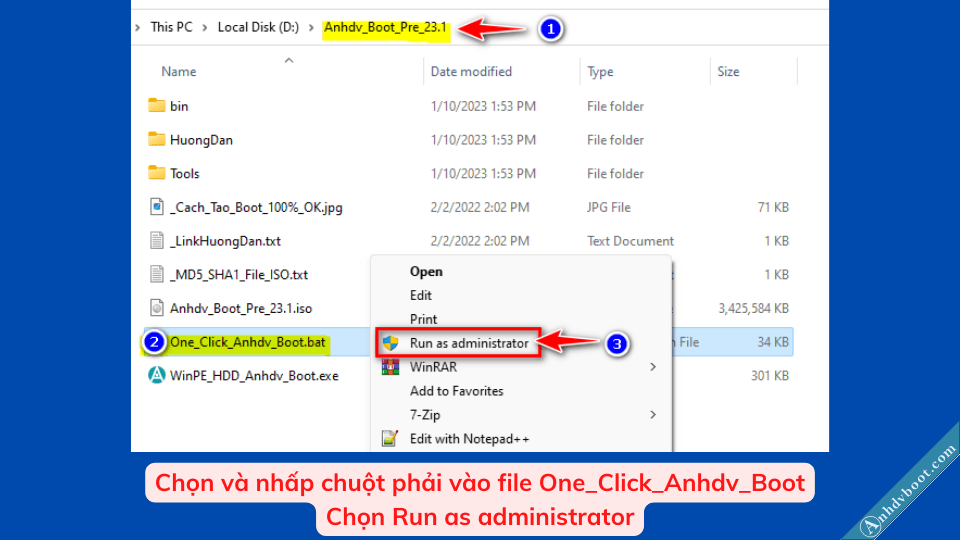 Anhdv Boot 2024 đã được phát hành với nhiều cải tiến mới. Cách tạo usb boot phân vùng ẩn ở phiên bản này vẫn như phiên bản trước đó. Lưu ý quan trọng nhất là giữ nguyên tên gốc file tải về và copy ra ngoài cùng ổ nào đó và giải nén.